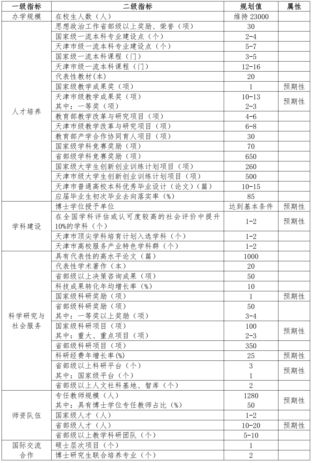 学校事业发展“十四五”规划主要指标