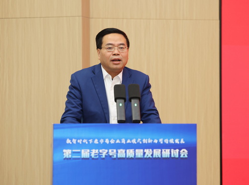 张亚在致辞中代表学校向拨冗莅临的各位领导、专家学者和企业家朋友们表示热烈的欢迎,向长期关心支持学校发展的各界同仁致以最诚挚的感谢。他指出,首届老字号高质量发展研讨会以来,学校积极与老字号企业合作,取得丰硕成果。在科研创新层面,学校整合校内外多学科资源,形成了一系列初步成果,组织专家团队编撰了老字号专著;管理学院、经济学院等多个团队成功申报多项省部级以上的老字号相关重点研究课题,学校还参与了商务部《中华老字号年度发展报告》的改版与编撰工作,出席第四届中华老字号创新发展大会并作经验分享;各学院积极为老字号企业提供专业的咨询服务,将理论知识转化为解决实际问题的方案。在人才培养层面,学校构建立体式、沉浸式的育人体系。连续三年组织“大学生走进老字号”主题社会实践活动,足迹遍布全国上百家老字号企业;邀请老字号传承人进校园,为学生讲授“老字号传承人大讲堂”;举办“带老字号回家过年”老字号嘉年华活动,让师生在选购年货的同时,感受非遗技艺与企业文化的魅力;积极挖掘研究老字号里的思政元素,编辑了《基业长青的红色基因--老字号中的党史党建故事》,同时,将思政课堂搬进老字号企业,从力生制药的匠心中品守正创新,从长芦汉沽的盐粒上读奋斗史诗等。学校还将老字号的故事搬上了舞台,原创话剧《商道之范旭东》即将首演。同时,积极承办各类大学生老字号创新创意创业大赛,激发青年学子热爱并投身老字号事业的热情。