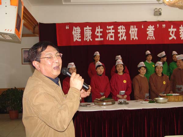 春意融融,其乐融融。3 月16 、17 日,校工会在瑞德厦餐厅举办了别开生面的“健康生活我做‘煮’” 女教职工厨艺大赛。这是庆祝“三八”节系列活动之一。市教育工会主席李子星,我校党委副书记杨万义、史习红在百忙中参加了活动,并为获奖队颁发了奖杯。校工会副主席宋树发、商学院旅游管理系高级实验师陆宏礼等 7 位评委担当大赛评比工作。女工委员会主任卫弘主持了比赛。来自全校 26 个分会组成的 17 个团队,51 名选手进行了比赛,近百名教职工到场观看。
