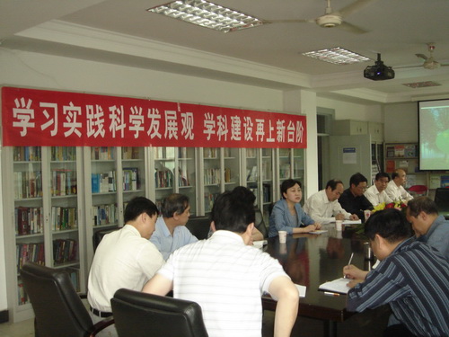 首先听取了刘小军院长关于市级重点学科产业经济学建设情况的汇报,刘院长就重点学科建设的近期工作、中长期规划设想等进行了详细介绍,同时,就重点学科建设方面提出了目前存在的几个问题,学院的其他成员在教学、科研等方面也提出了一些中肯的意见和建议。针对学院在重点学科建设方面存在的几个问题,各有关处室的同志与学院交换了意见,当即解决了三个问题,同时,大家纷纷表示,要以科学发展观为指导,转变工作作风,为学院做好服务。