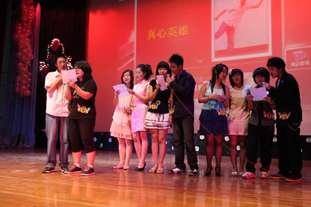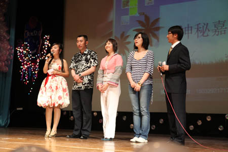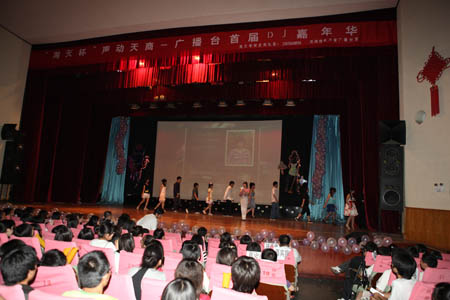 5月18日晚,“声动天商”——首届校园 DJ 嘉年华决赛在科学会堂举行。校党委宣传部副部长张克明,广播台指导教师柴桐、星海艺术团指导教师严慧菁出席活动。天津人民广播电台交通台“ 1068 夜航班”节目主持人王琳、文艺台主持人浩然、慕容应邀参加活动并与校团委指导教师和校广播台高年级播音共同担任评委。当晚,10 位入围决赛的选手经过情景 DJ 秀、才艺展示和现场配音三个环节的激烈角逐,最终来自机械工程学院机械设计专业 07 级学生李然获得冠军。特别是三位电台主持人的现场点评和精彩示范把现场气氛推向高潮。