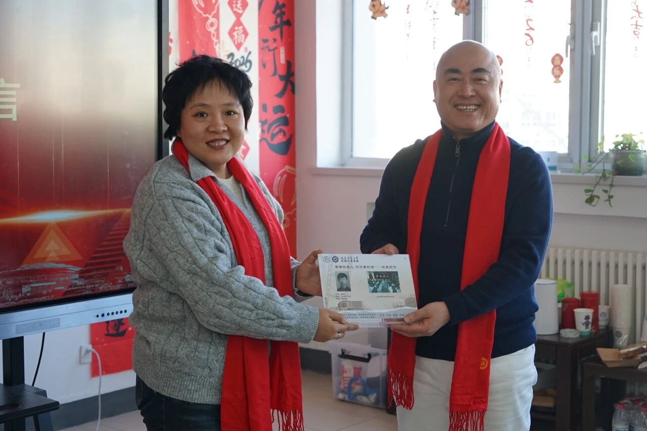 张莹为袁晖和张雪囡颁发校友返校纪念品。袁晖表示,正是学校的教育与熏陶,为他的事业发展奠定了坚实基础,这份积淀让他得以在奋斗中不断成长。张雪囡谈到,学院不仅教授了专业学识,更塑造了他踏实奋进的品格,这些始终是他前行路上的温暖力量与坚定底气。